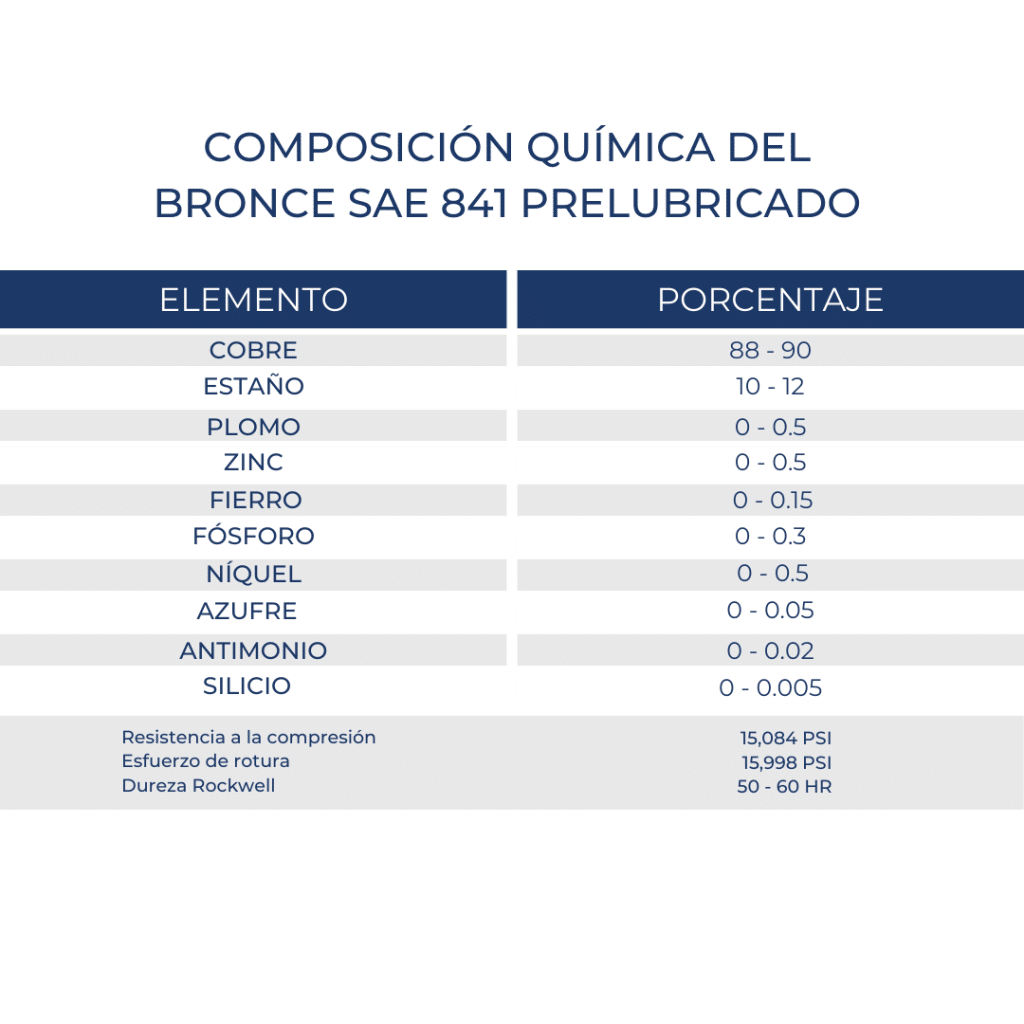 The exact composition of SAE 841 sintered bronze can vary, but is generally made up of approximately: